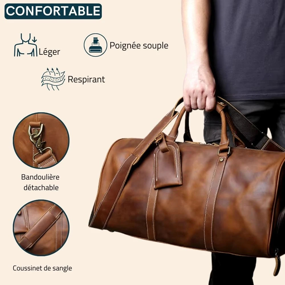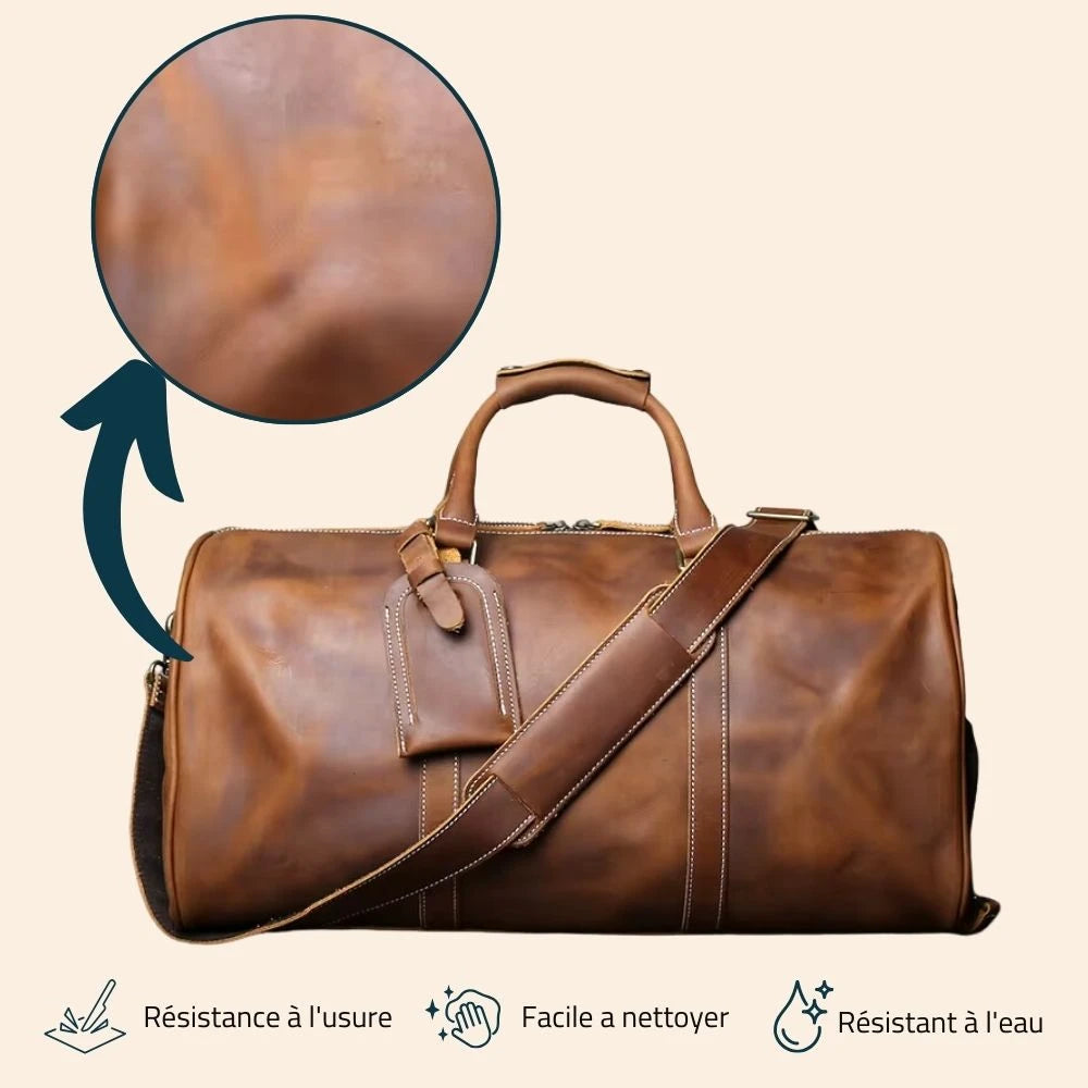 Fabriqué en cuir durable, ce sac de voyage résiste à l’usure et aux éclaboussures tout en restant facile à entretenir. Son design élégant, ses coutures renforcées et ses finitions haut de gamme en font un choix fiable et intemporel pour tous vos déplacements.