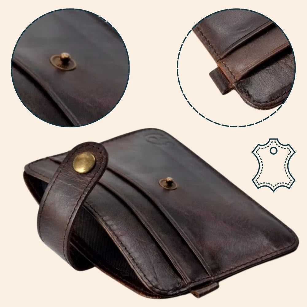"Finitions impeccables et bouton-pression pratique. Le style vintage et la qualité du cuir dépassent mes attentes. Je recommande vivement !"
