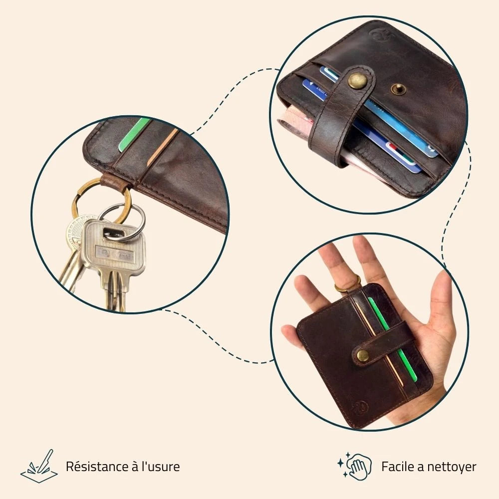 Oui, un porte-clés intégré permet d’attacher vos clés directement dans le porte-monnaie, offrant une solution pratique et compacte.