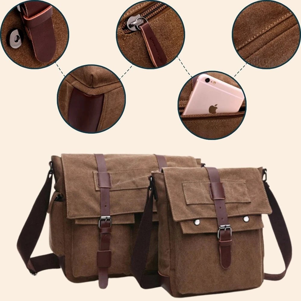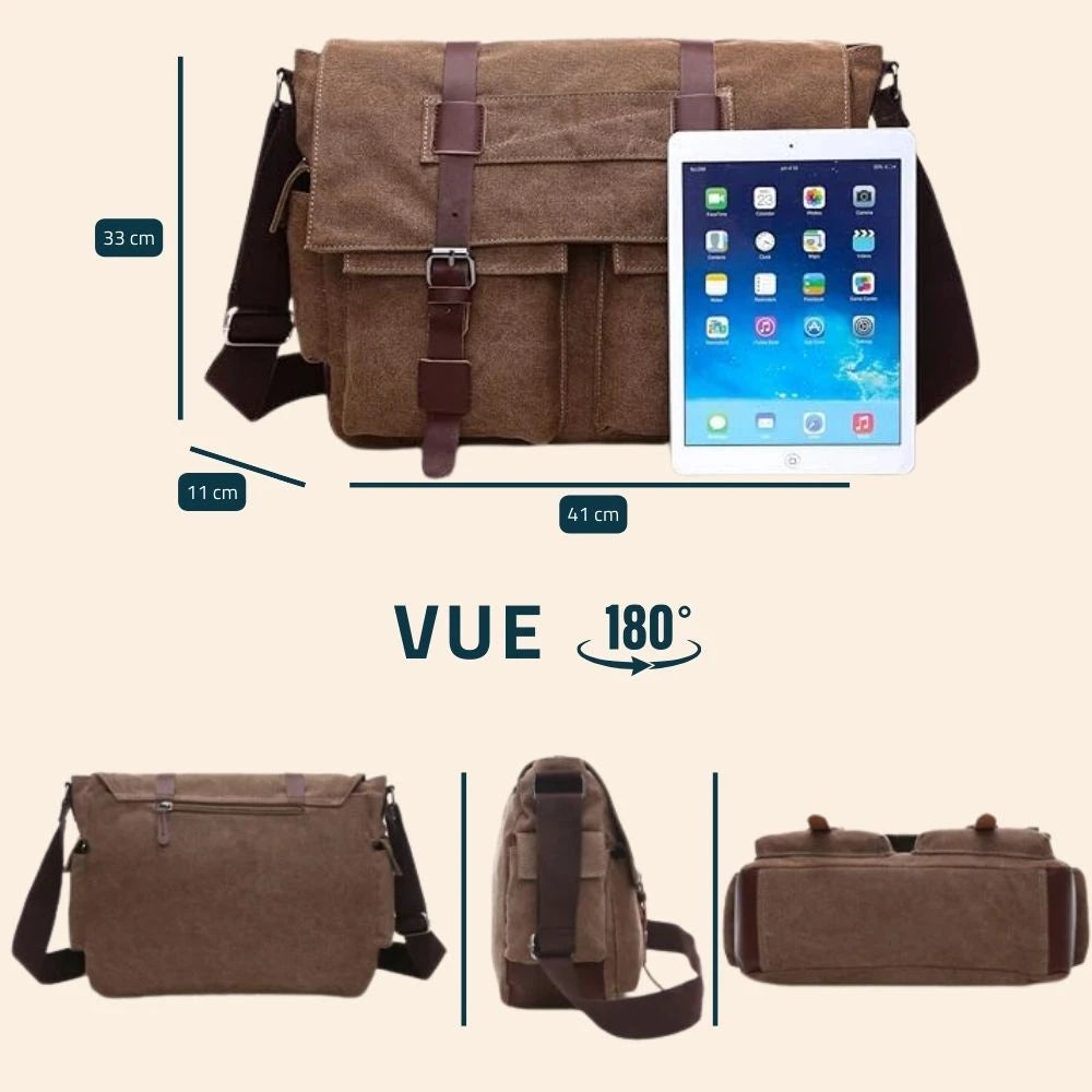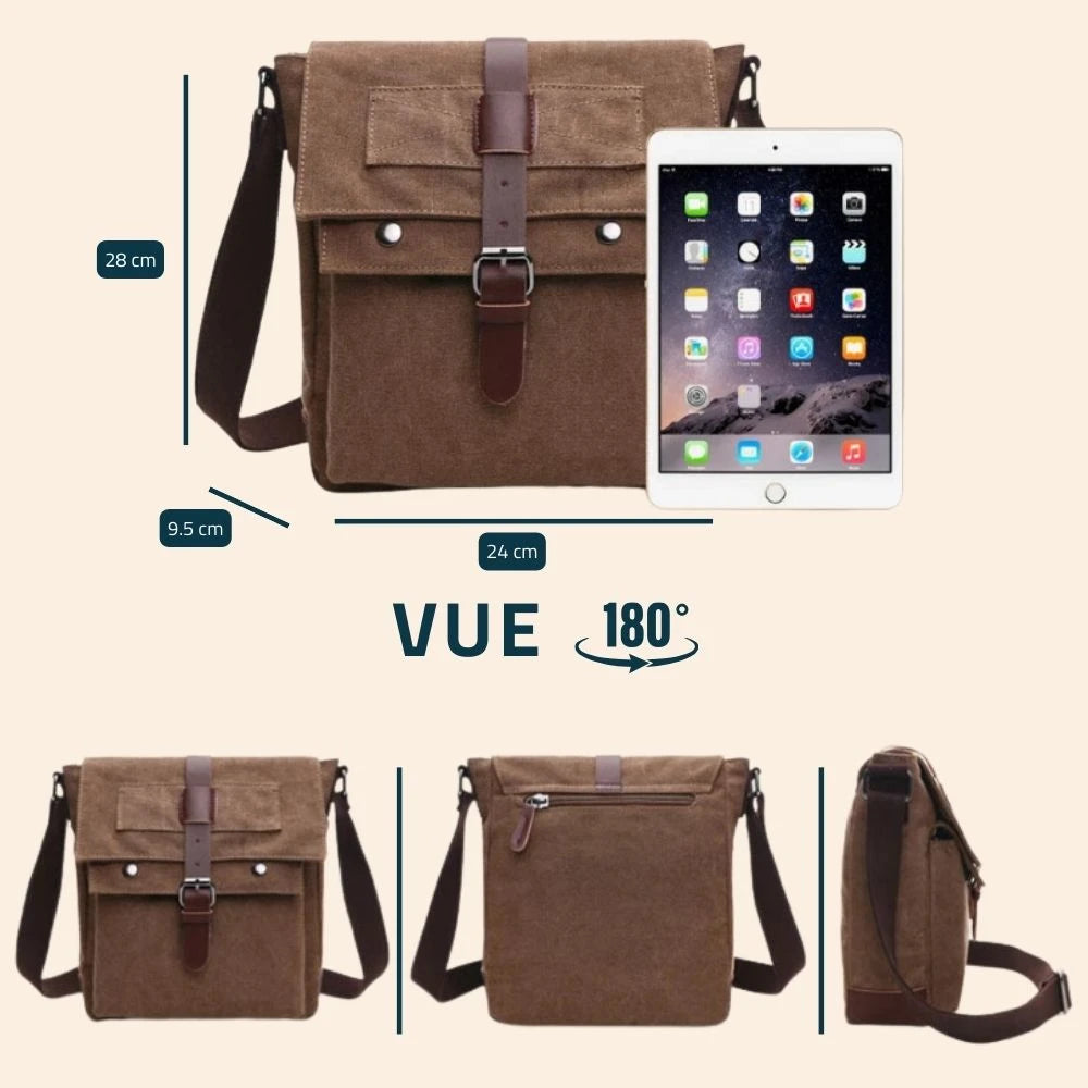 Adoptez un style intemporel et fonctionnel avec ce sac à bandoulière en toile robuste.