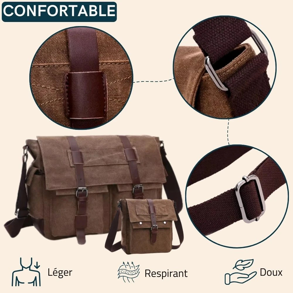 Conçu en toile durable avec des coutures renforcées, ce sac à bandoulière disponible en sacoche et besace offre une solidité exceptionnelle, ses panneaux latéraux en cuir. Idéal pour un usage quotidien intensif, sans compromis sur le style.