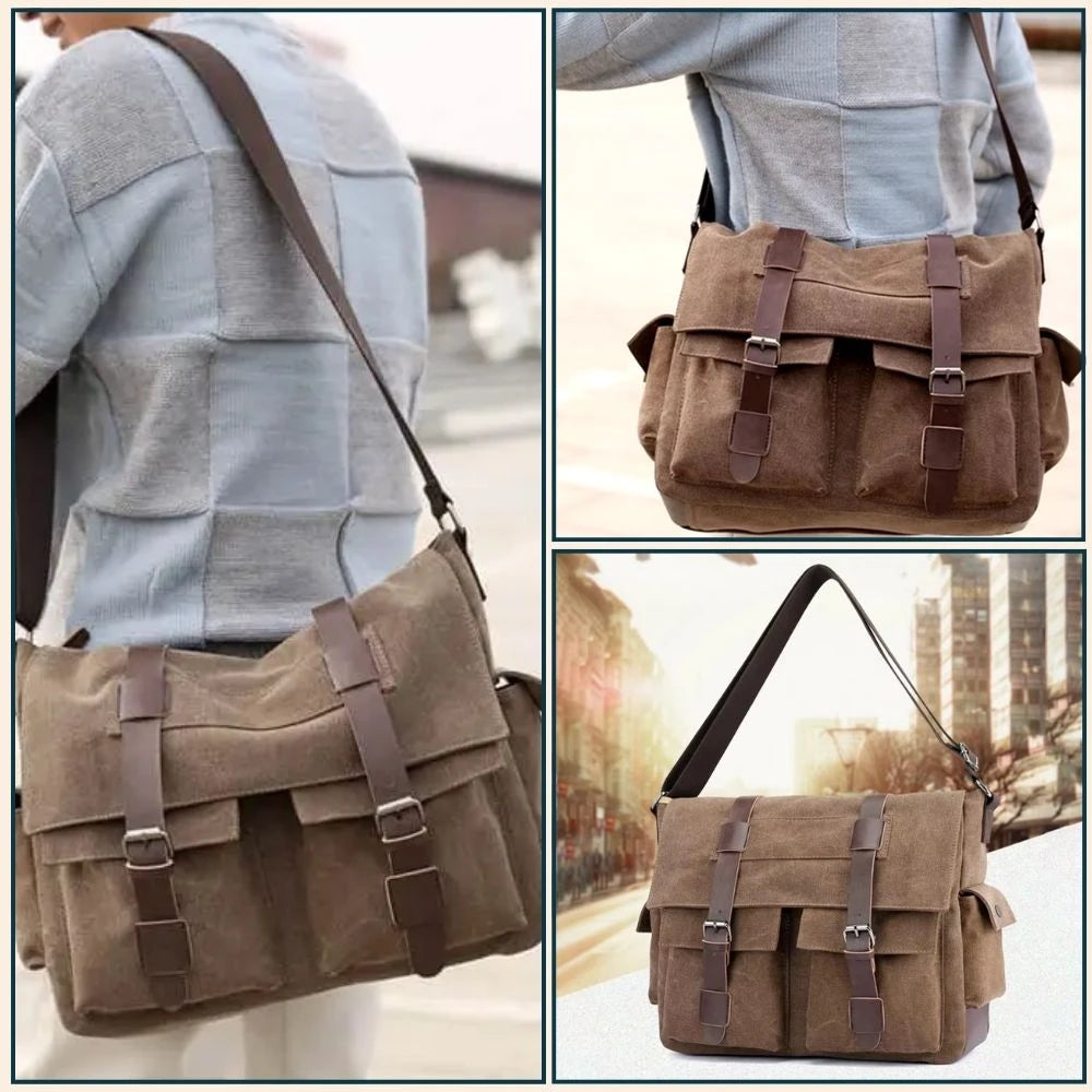 Alliant style vintage et fonctionnalité, ce sac à Bandoulière en Toile pour Homme est conçu en toile robuste et dispose de sangles en cuir élégantes. Son compartiment principal spacieux et ses poches avant pratiques vous permettent de ranger vos essentiels en toute sécurité. La bandoulière ajustable assure un confort optimal, parfait pour un usage quotidien ou professionnel.