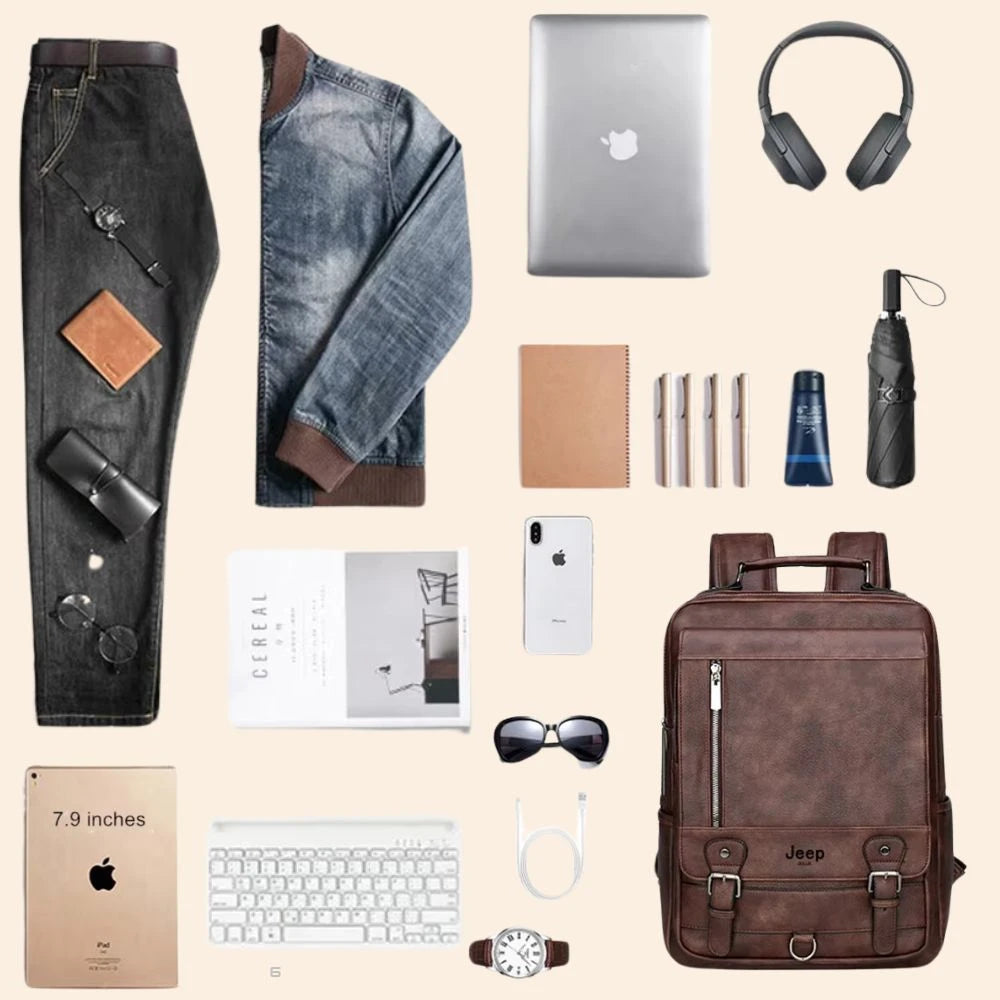 Transportez vos essentiels avec style grâce à ce sac à dos en cuir élégant et fonctionnel. Il dispose d’un compartiment pour ordinateur portable jusqu’à 15,6 pouces, de poches zippées pour accessoires, et de bretelles ajustables. Idéal pour le travail ou les voyages, il allie confort et durabilité.