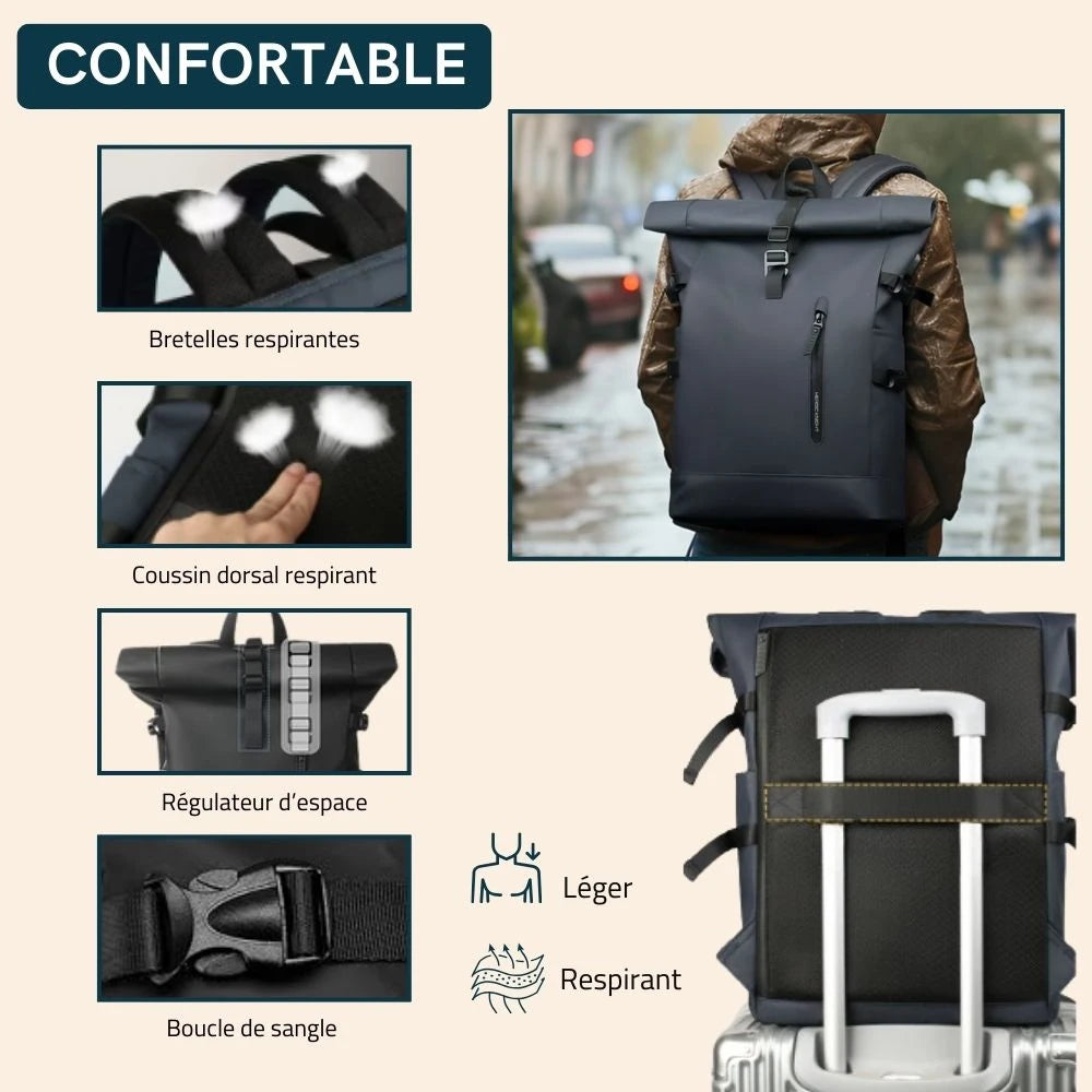 Protégez vos affaires avec style grâce à ce sac à dos étanche et moderne.