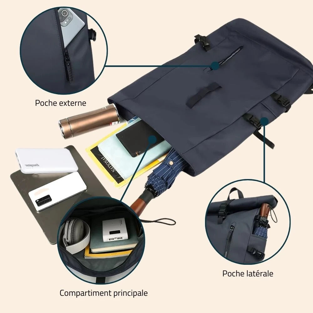 Le sac de dos Étanche® offre une grande capacité de rangement, idéal pour transporter un ordinateur de 15 pouces, des vêtements et des accessoires de voyage. Avec ses multiples compartiments, il assure une organisation parfaite, facilitant l'accès à vos essentiels.