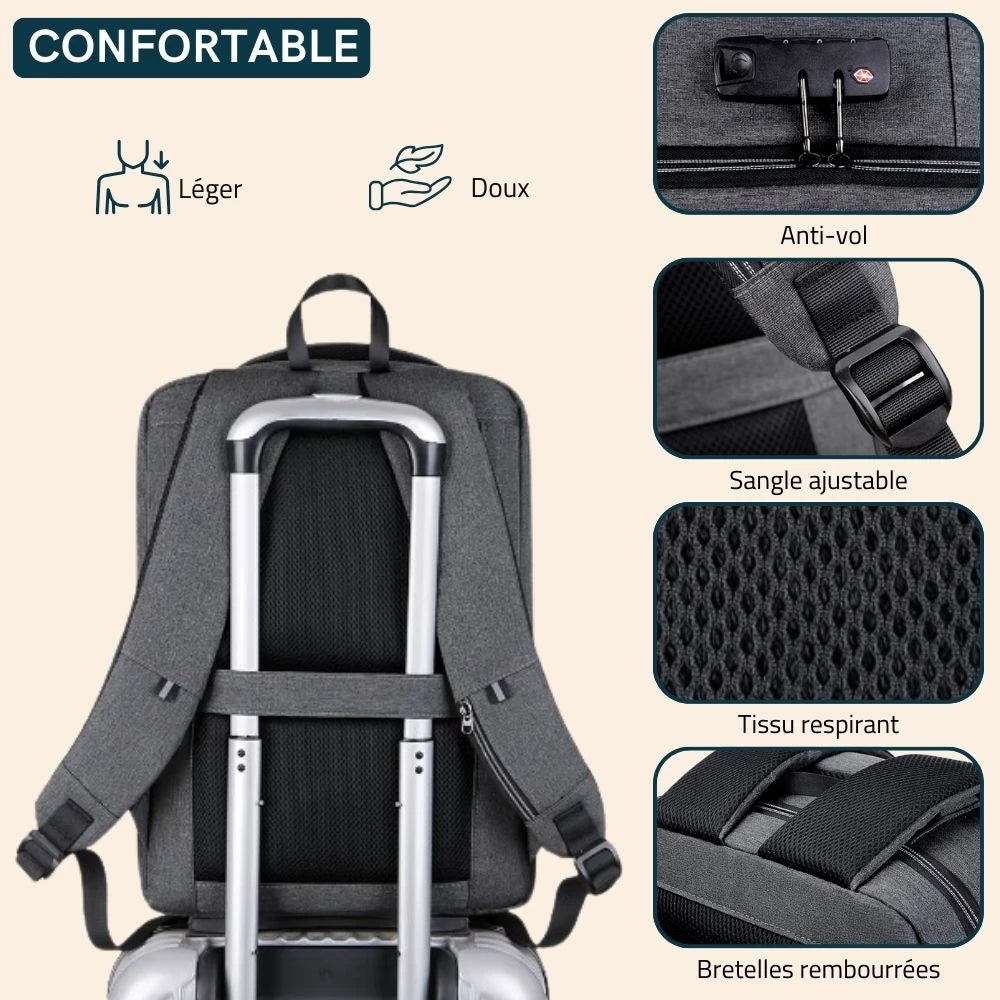 Ce sac à dos est conçu pour vous offrir un confort durable grâce à ses bretelles rembourrées et ajustables. Le tissu garde votre dos frais, idéal pour un port prolongé lors de vos déplacements.
