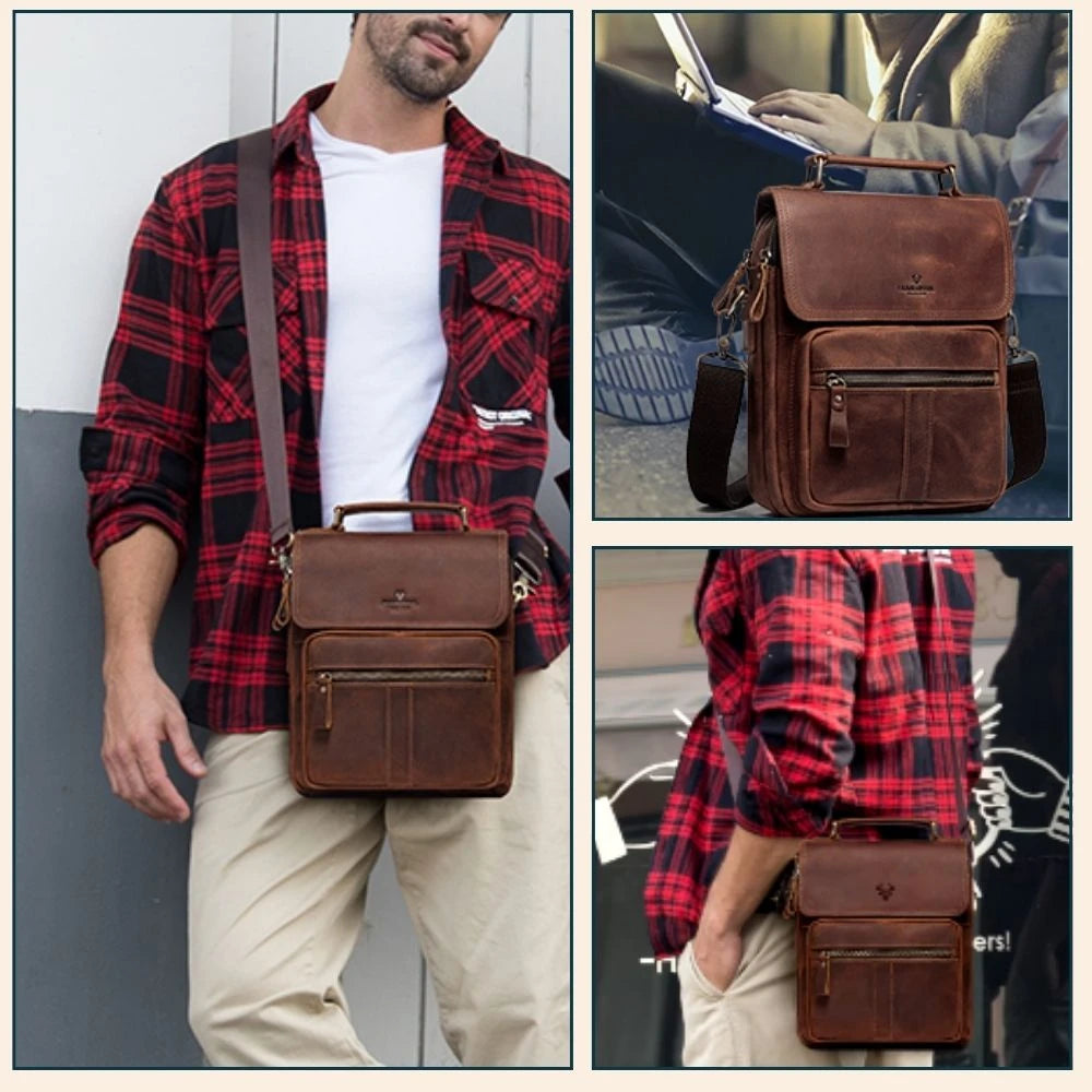 Découvrez notre sac bandoulière en cuir, alliant style vintage et fonctionnalité moderne. Doté de deux compartiments spacieux, de poches zippées sécurisées et d’une bandoulière ajustable, il est idéal pour vos journées bien remplies. Élégant, pratique et conçu pour durer !