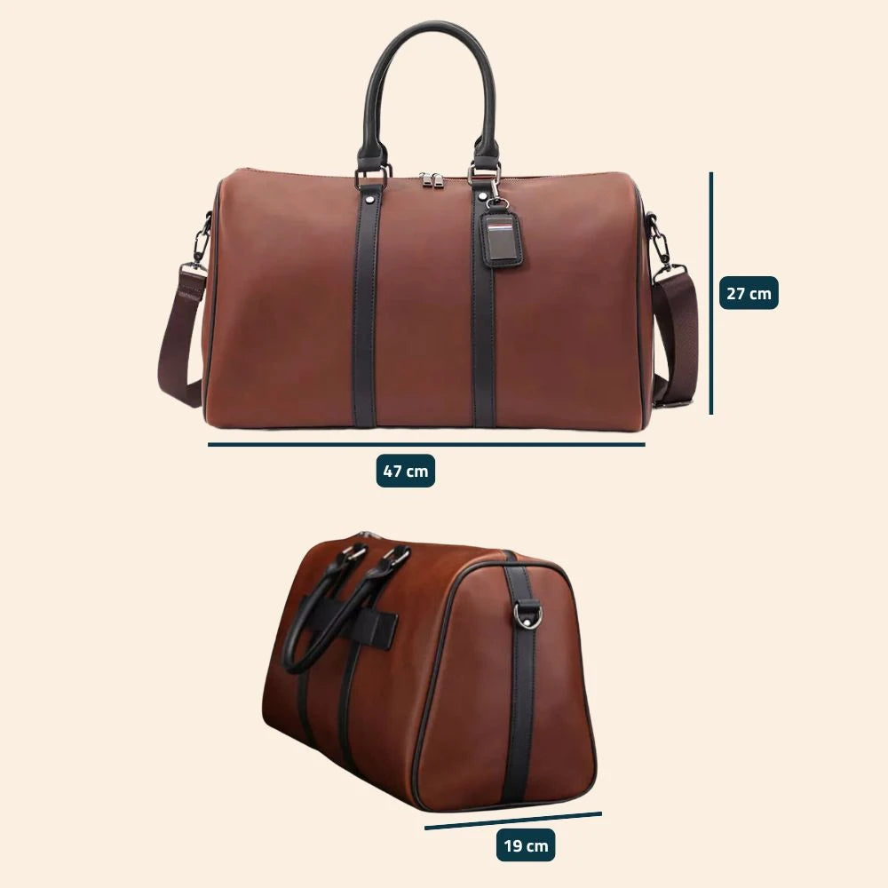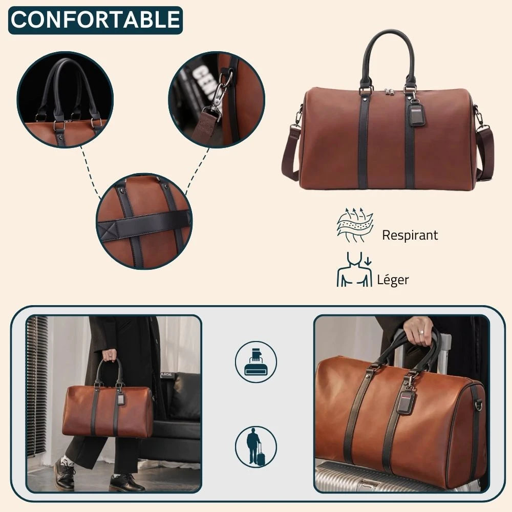 Ce sac weekend en cuir allie élégance et fonctionnalité. Fabriqué en cuir lisse durable, il offre un grand compartiment principal, des poches intérieures pratiques, une bandoulière ajustable et des poignées renforcées. Idéal pour les voyages courts, il garantit style et organisation en toutes circonstances.