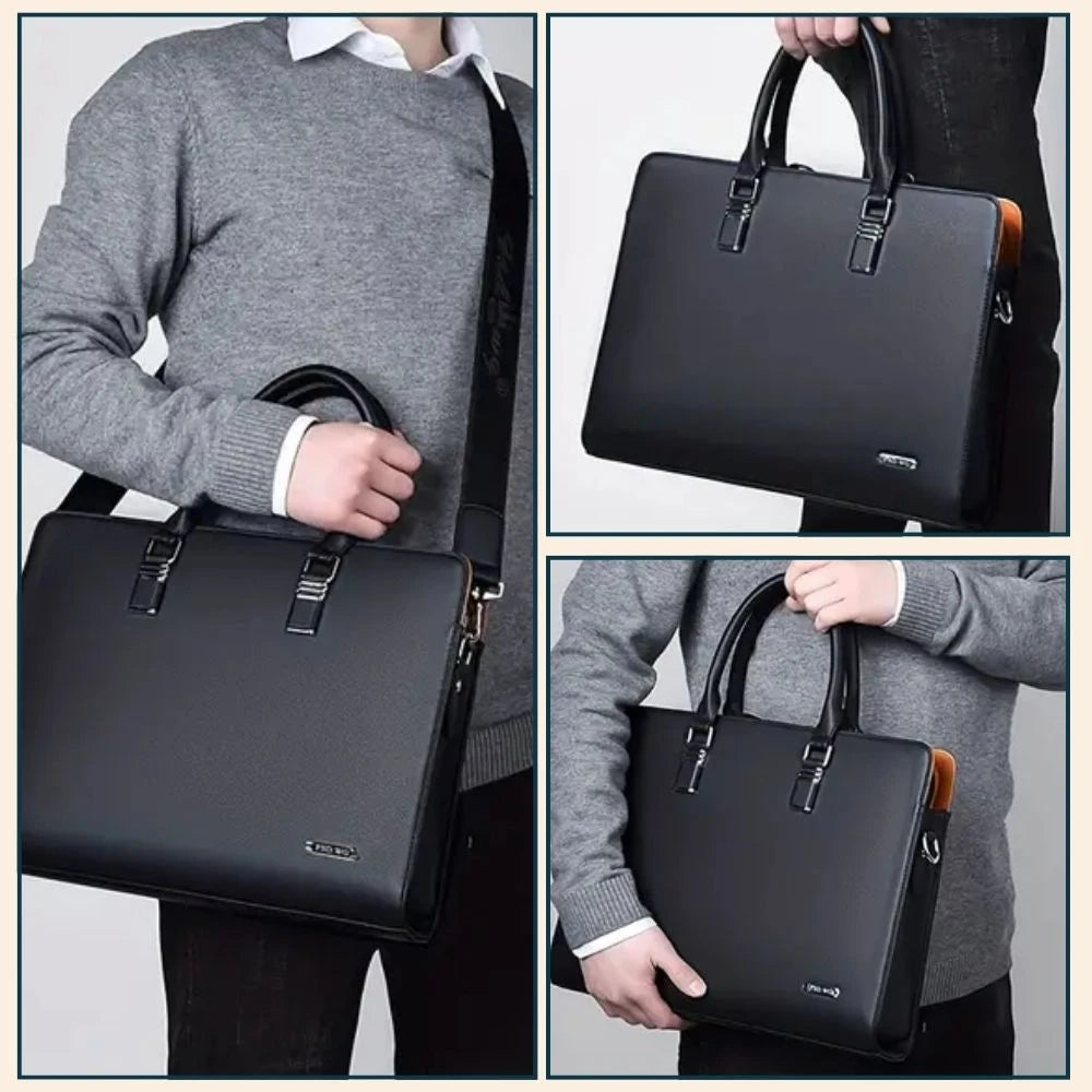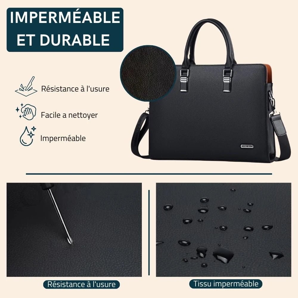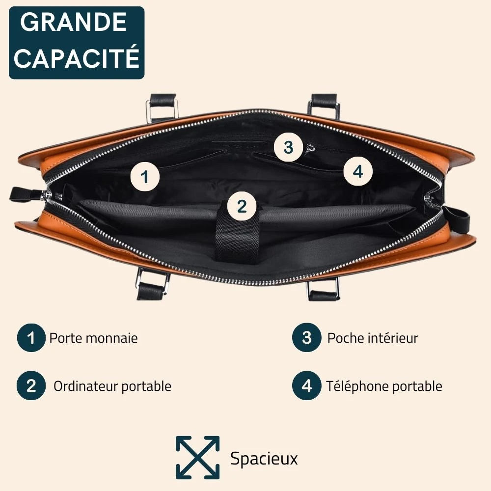 Mallette Ordinateur en Cuir pour Homme avec plusieurs compartiments organisés. Espace dédié pour ordinateur portable, documents, et accessoires. Design élégant et professionnel avec poches multiples pour une organisation efficace. Poignées solides et bandoulière ajustable pour un transport confortable. Parfait pour les réunions, les déplacements professionnels, et une utilisation quotidienne.