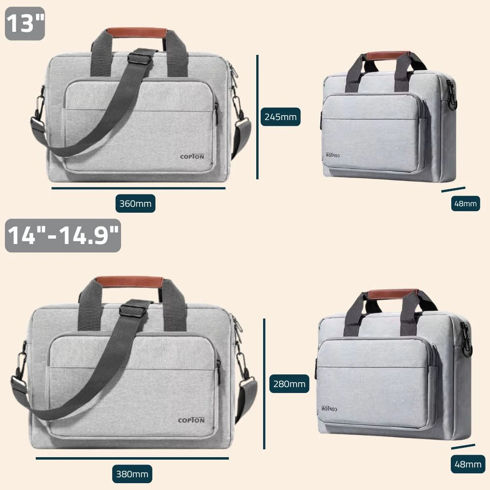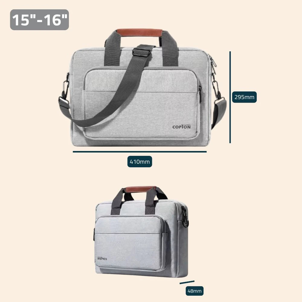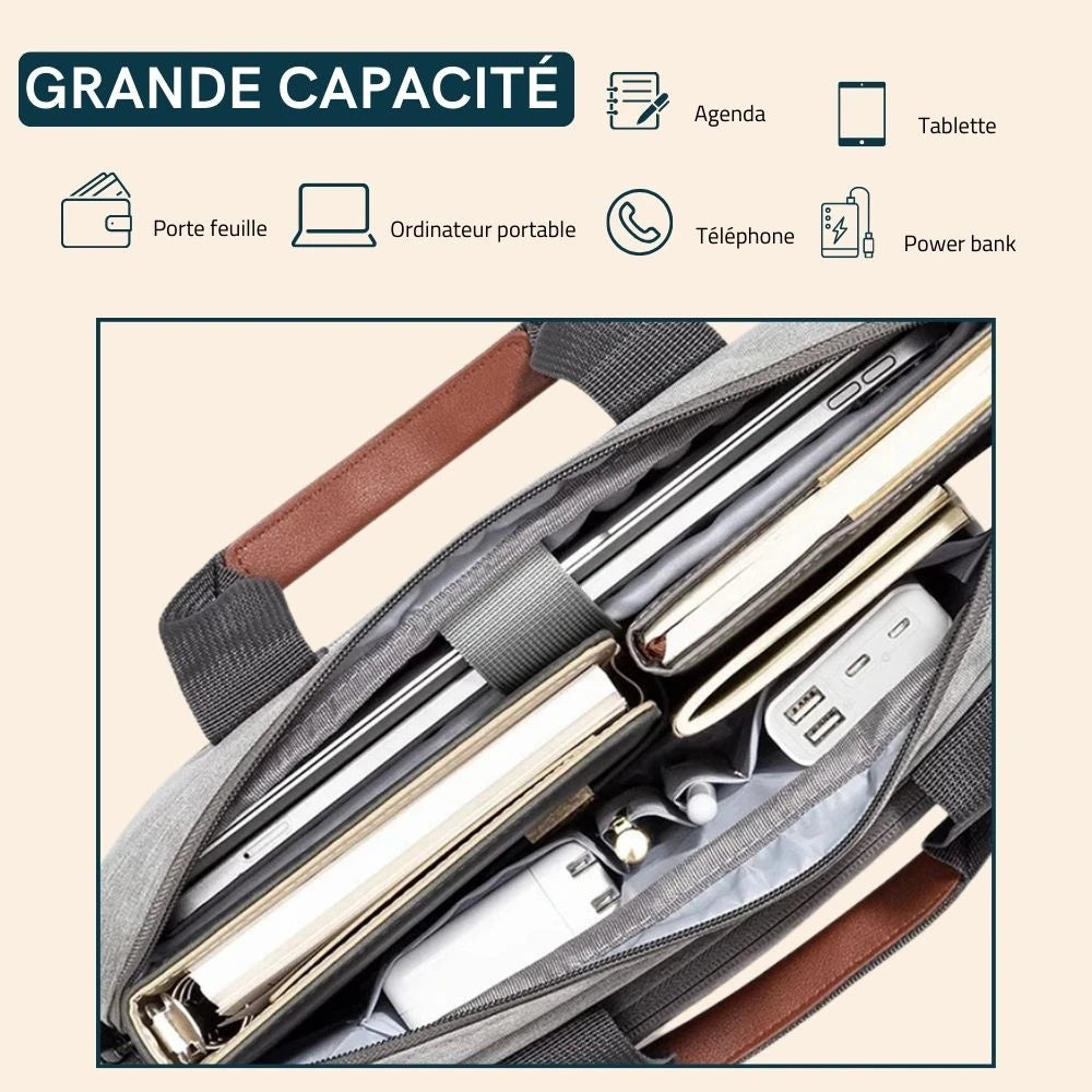 La sacoche est conçue pour accueillir des ordinateurs portables allant jusqu’à 15,6 pouces. Elle offre également des compartiments supplémentaires pour une tablette, des documents, et divers accessoires.